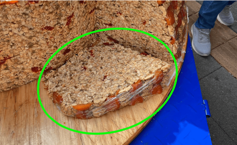 新疆切糕是新疆傳統(tǒng)糕點(又稱瑪仁糖),利用多種堅果,加入糖漿壓制而成。有部分無良商人會混淆價格,強逼消費。由于切糕本身頗有份量,因此一小塊的價錢隨時變天價!