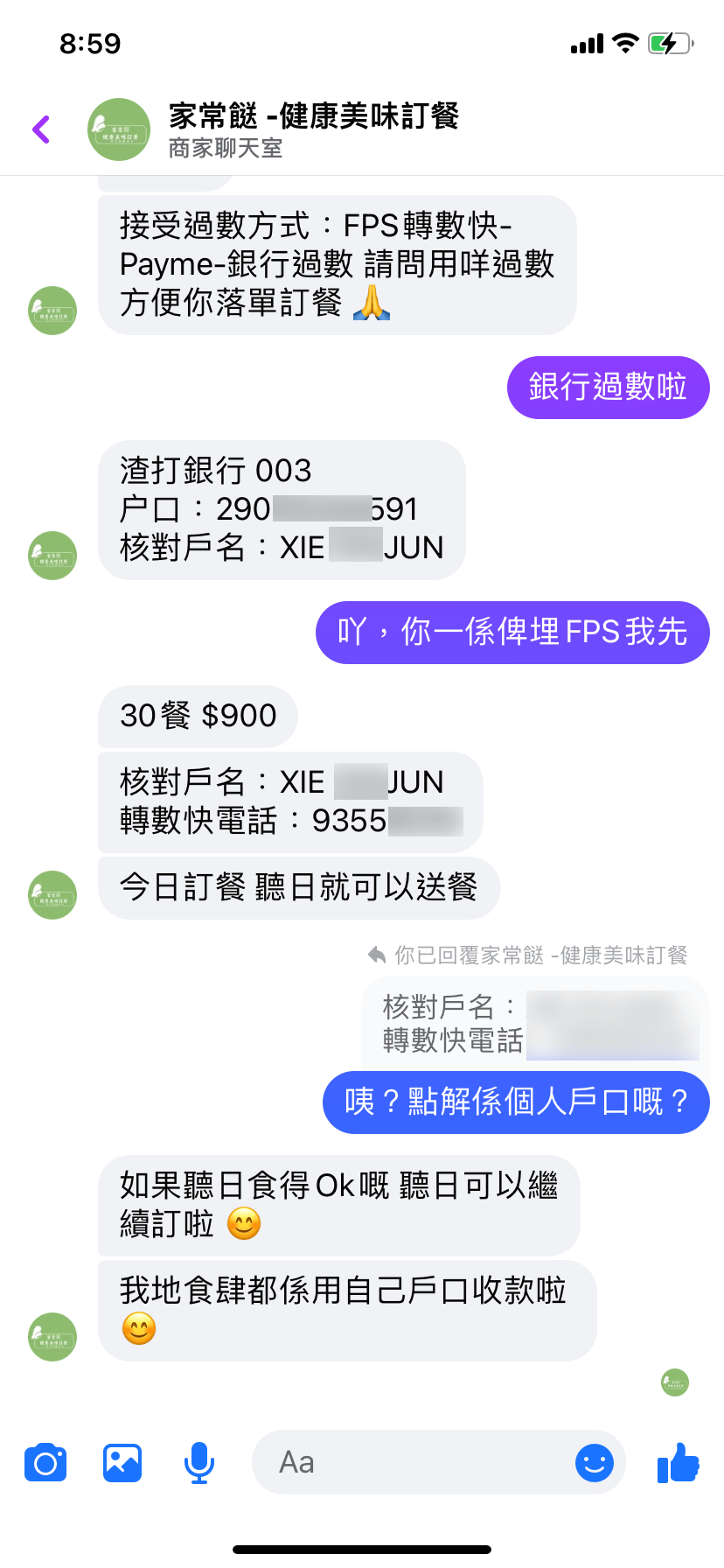 沒想過就逐漸步入騙徒的圈套,當(dāng)他們向?qū)m撍魅「噘Y料后,對(duì)方便請(qǐng)馮先生的同事入錢,之后便可以訂餐,“我哋諗住計(jì)番起廿幾蚊,都唔會(huì)呃啩,咁就入?yún)X俾佢(騙徒)。”他們12月底過數(shù),打算1月初便開始訂餐,結(jié)果再向?qū)Ψ剿魅〔藛螘r(shí),便已不獲回復(fù),甚至已被封鎖。