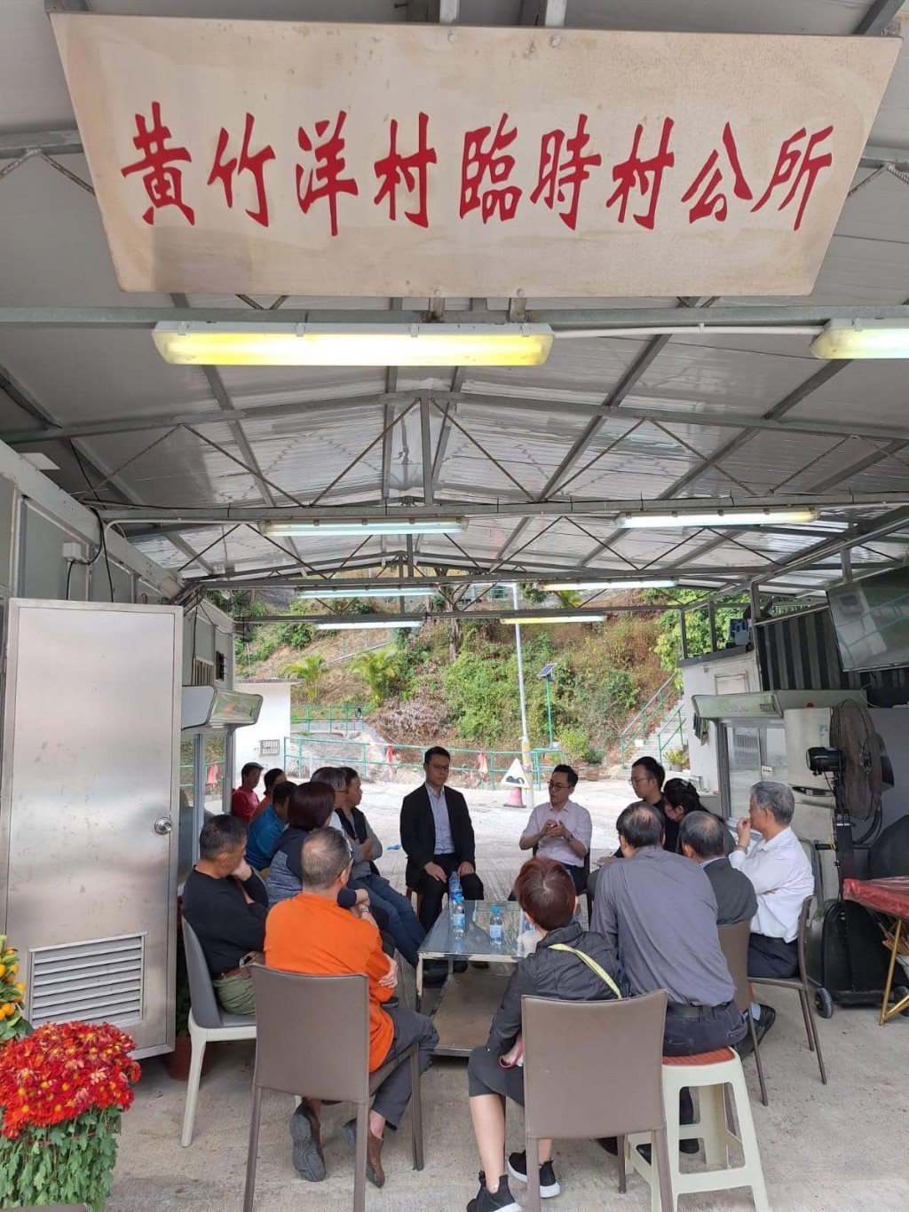 沙田民政專員、運輸署代表、小巴運營商在黃竹洋村內(nèi)協(xié)商解決辦法。 (民政事務(wù)總署fb)
