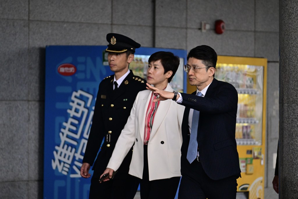 ▲海關(guān)關(guān)長(zhǎng)何珮珊(中)抵達(dá)深圳灣口岸。