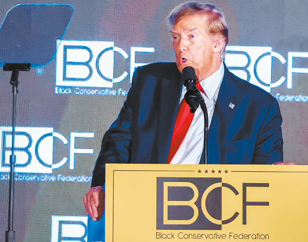 特朗普2月23日在一場晚宴上發(fā)表演講。路透社