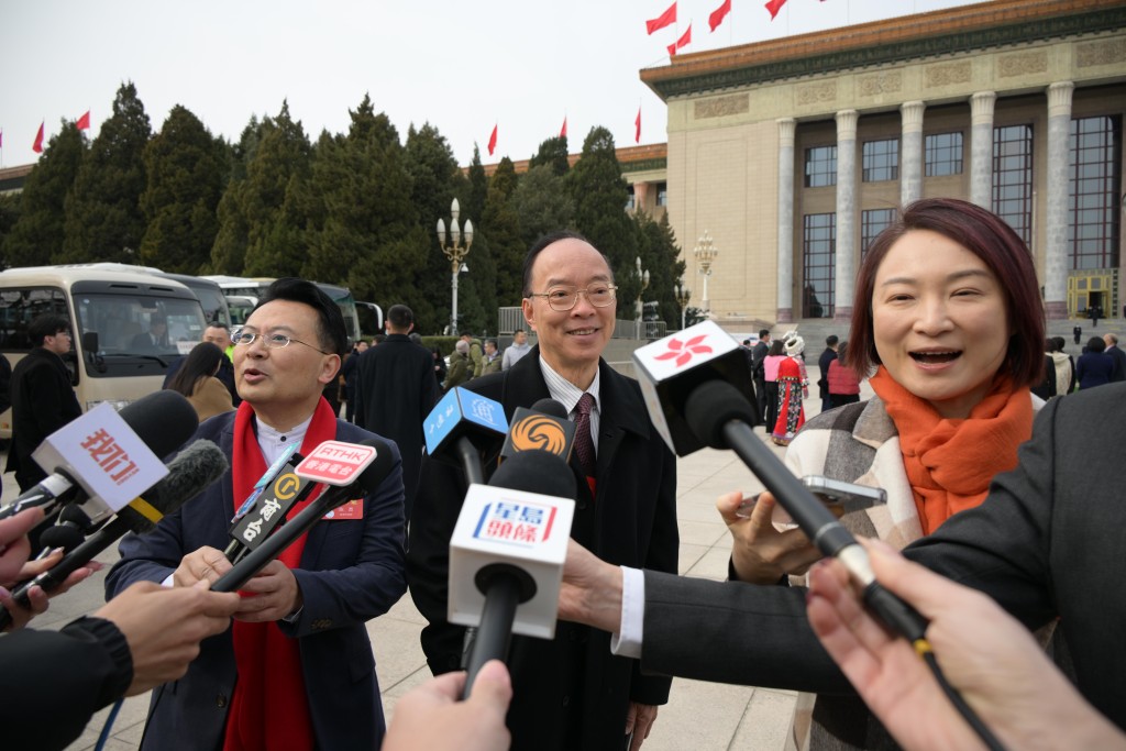▲港區(qū)人大代表團(tuán)團(tuán)長(zhǎng)馬逢國(guó)(中)。(蘇正謙攝)