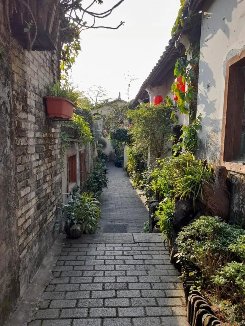 甘坑古鎮(zhèn)有“古城墻、舊牌坊、青石路、老榕樹,還有那鏤刻精美的窗欞,仿佛在娓娓訴說著一個(gè)又一個(gè)古老的故事”; “走進(jìn)小鎮(zhèn),漫步于曲幽通徑的巷弄里。踏著苔花斑斑的青石小路,路邊家家戶戶種滿了五顏六色的鮮花,一片綠意盎然”。