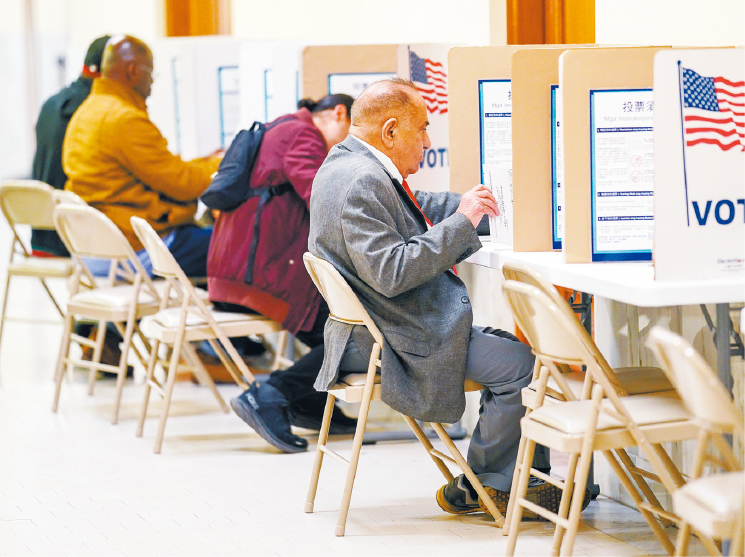 ▲“超級星期二”前一天,選民前往舊金山市政廳投票中心提前投票。路透社