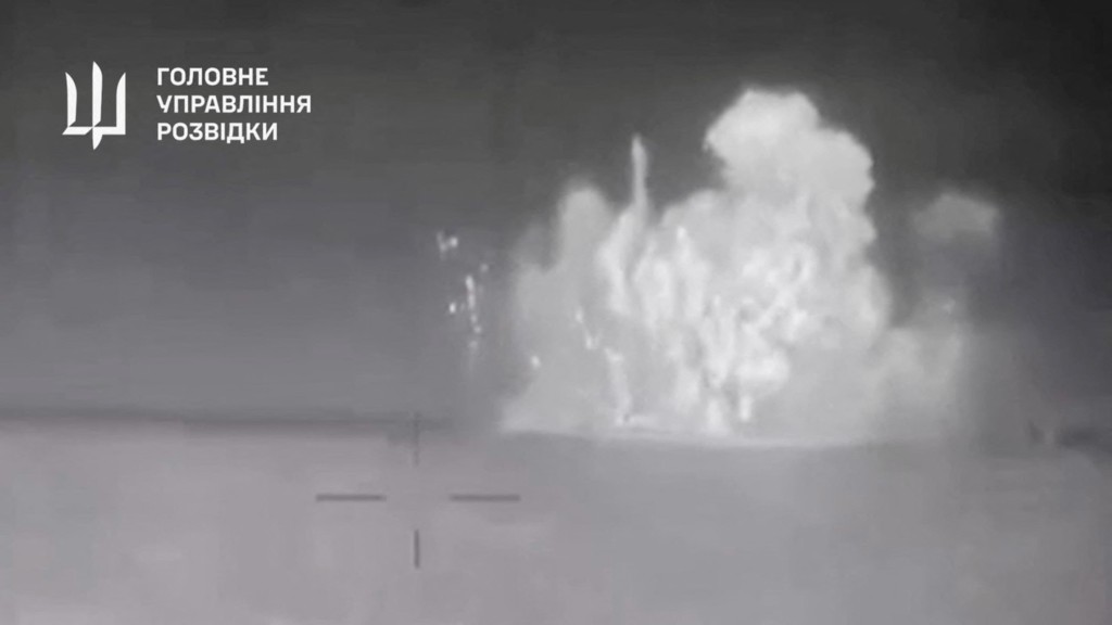 ▲烏克蘭公布科托夫號(hào)(Sergei Kotov)被擊中的畫面。 路透社