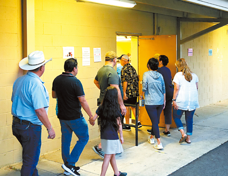 ▲人們排隊(duì)進(jìn)入投票站。路透社