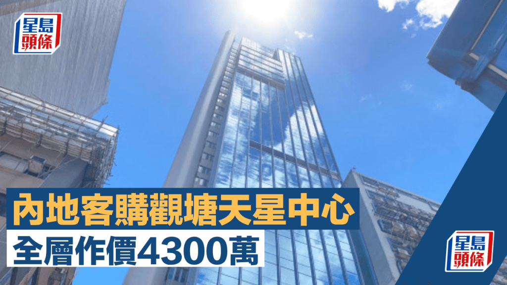 利嘉閣工商部分區(qū)董事文啟軒指,觀塘鴻圖道35號天星中心中層全層樓面,建筑面積約5,687方呎,原業(yè)主以4,834萬放售,最終減至以4,300萬售出,平均呎價7,561元,買家為內(nèi)地客,是次透過公司名義入市。