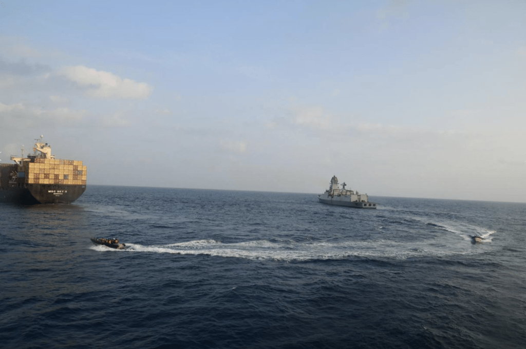 船只被一枚導(dǎo)彈擊中后,船身冒火,幸存船員全員棄船,以救生艇逃生,船只現(xiàn)于海面漂流。美聯(lián)社報道,至少有一艘美國軍艦和印度海軍曾登船協(xié)助救援工作。