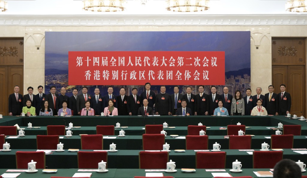 第十四屆全國人民代表大會第二次會議香港特別行政區(qū)代表團(tuán)全體會議。