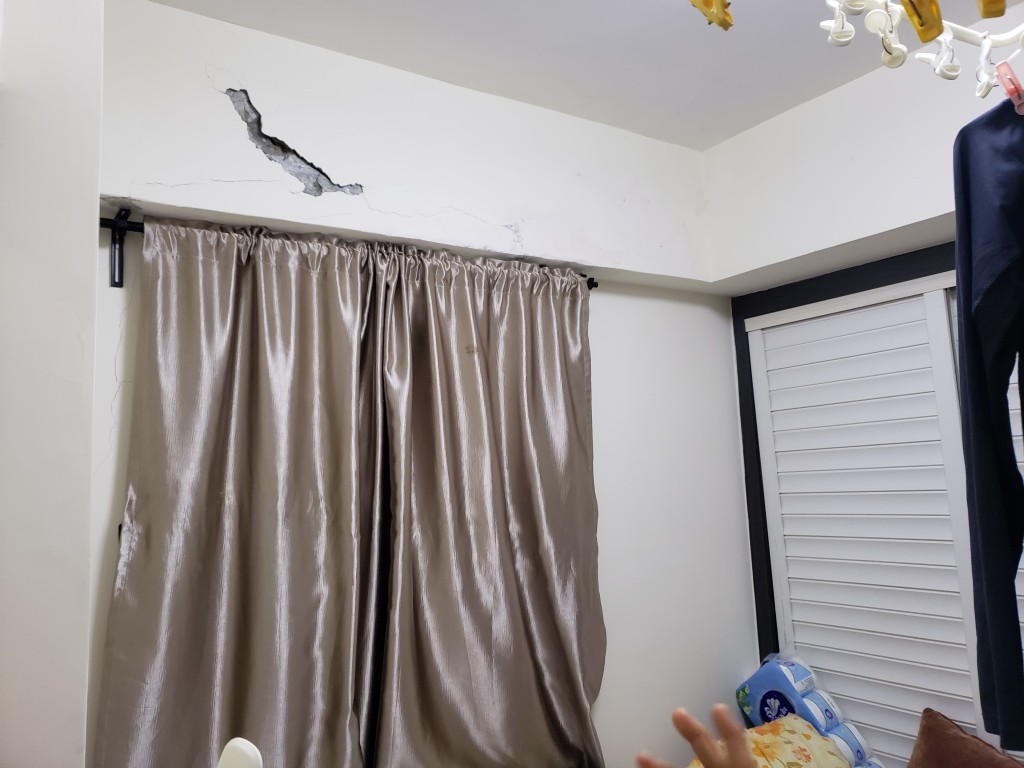 睡房墻身也因為滲水出現(xiàn)裂痕。