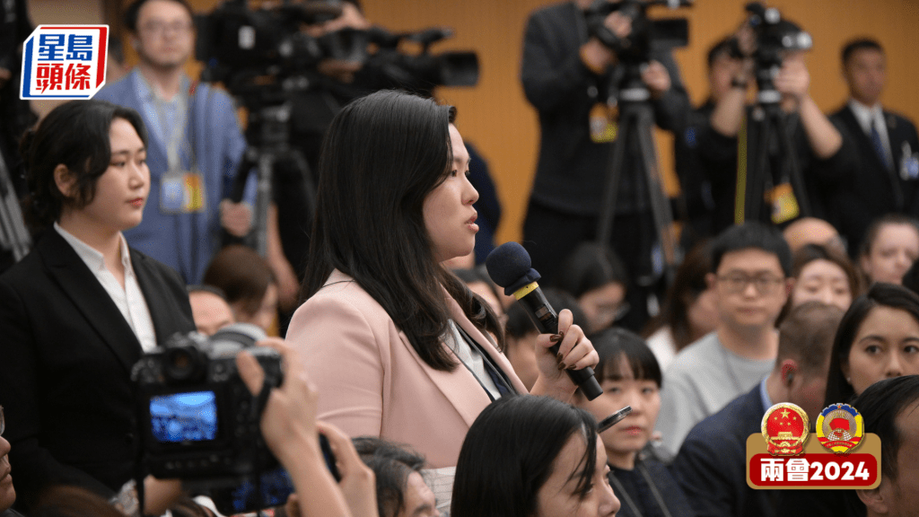 ▲《星島頭條》記者在14屆全國人大二次會議民生主題記者會上提問。 蘇正謙攝