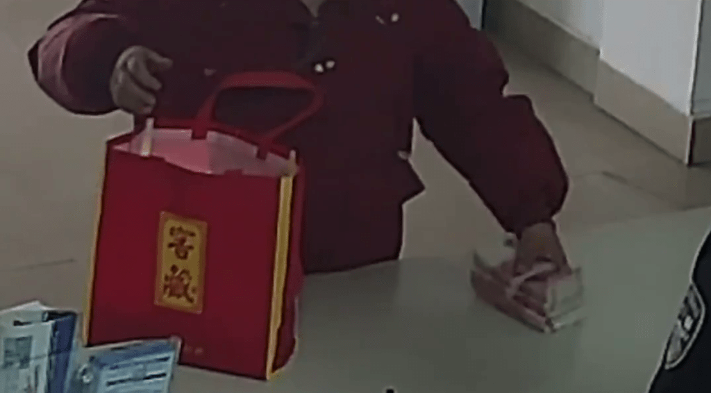 ▲女子從手提袋中取出大量人民幣。