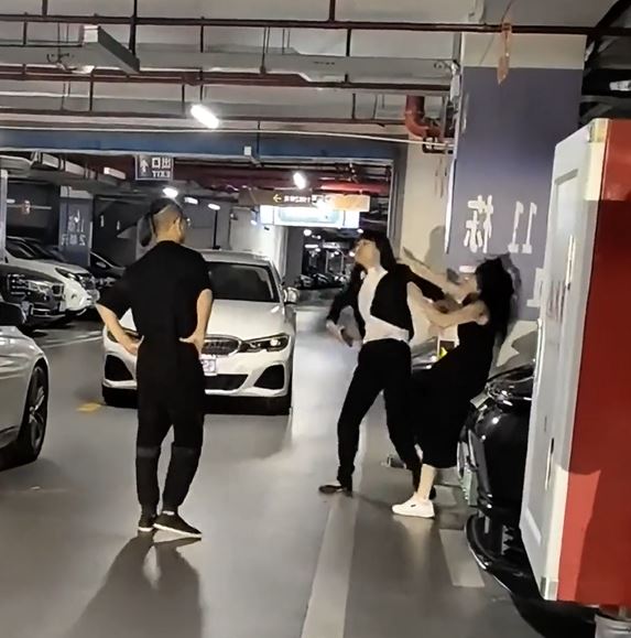 ▲東莞兩女早前在停車場互毆,袁先生在旁未出手阻止遭網(wǎng)民猛烈批評