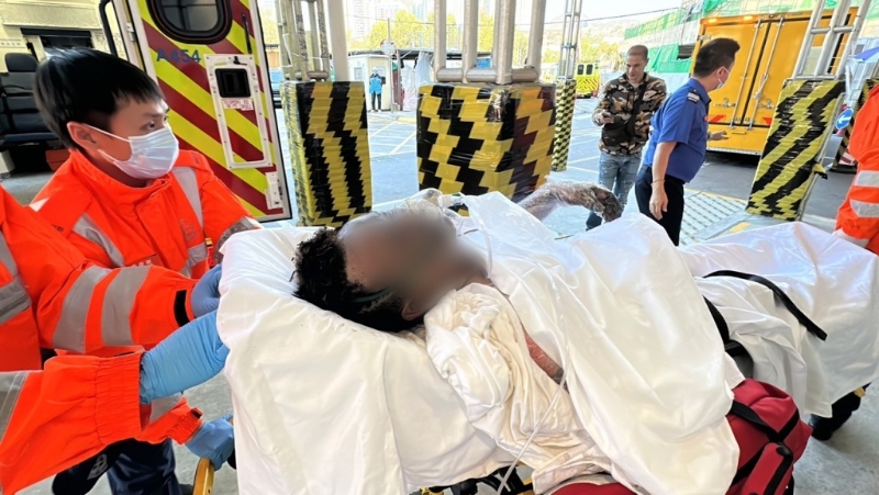▲其中一名傷者臉、手及上身熏黑送院。