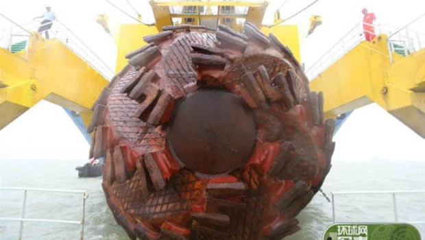 ▲圖為大陸挖泥船“天鯨號”巨大絞刀頭。示意圖/環(huán)球網(wǎng)