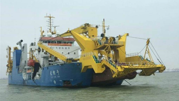 ▲前立委郭正亮表示,海委會主委管碧玲喊出驅(qū)離逾萬噸挖泥船,但這樣的船一定超過1萬噸。 圖為大陸挖泥船“天鯨號”,是禁止出口的“造島神器”。環(huán)球網(wǎng)