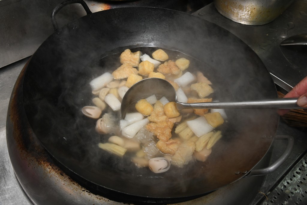 劉師傅兒時(shí)過(guò)年必吃南乳羅漢燜齋煲,當(dāng)年生活簡(jiǎn)單及物資不及現(xiàn)在豐盛,劉媽媽每逢過(guò)年前便會(huì)用多種時(shí)蔬及菇菌加南乳煮成齋菜,是大年初一第一口的應(yīng)節(jié)美食。