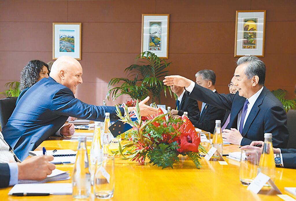 ▲中共中央政治局委員、中國外交部長王毅(右)18日訪問新西蘭,在新西蘭首都惠靈頓會見新西蘭總理拉克森(左),表達加強中新戰(zhàn)略溝通意愿。(摘自中國外交部官網(wǎng))