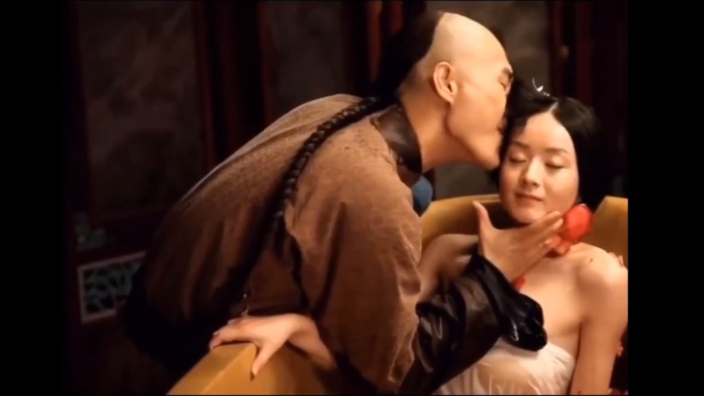 ▲趙麗穎與飾演“九阿哥”的男星朱梓驍拍了一場露骨激情床戲,畫面中趙麗穎上半身僅穿一件紅色肚兜,整個人跨坐在朱梓驍身上。