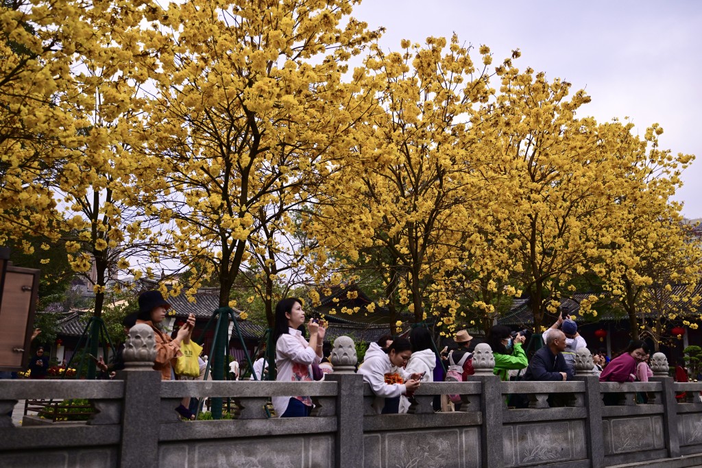 ▲近日光孝寺有一大片黃花風(fēng)鈴木正在燦爛盛放。