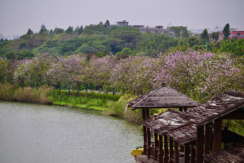 ▲河畔兩旁種植數(shù)百棵宮粉羊蹄甲。