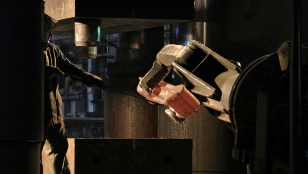 ▲俄羅斯鈦生產(chǎn)商VSMPO 一名員工操作鈦錠壓制。 路透社資料圖