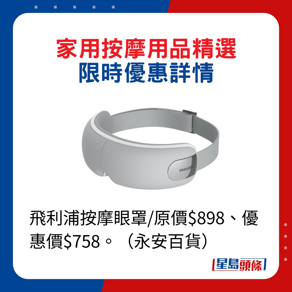 ▲飛利浦按摩眼罩/原價$898、優(yōu)惠價$758。(永安百貨)