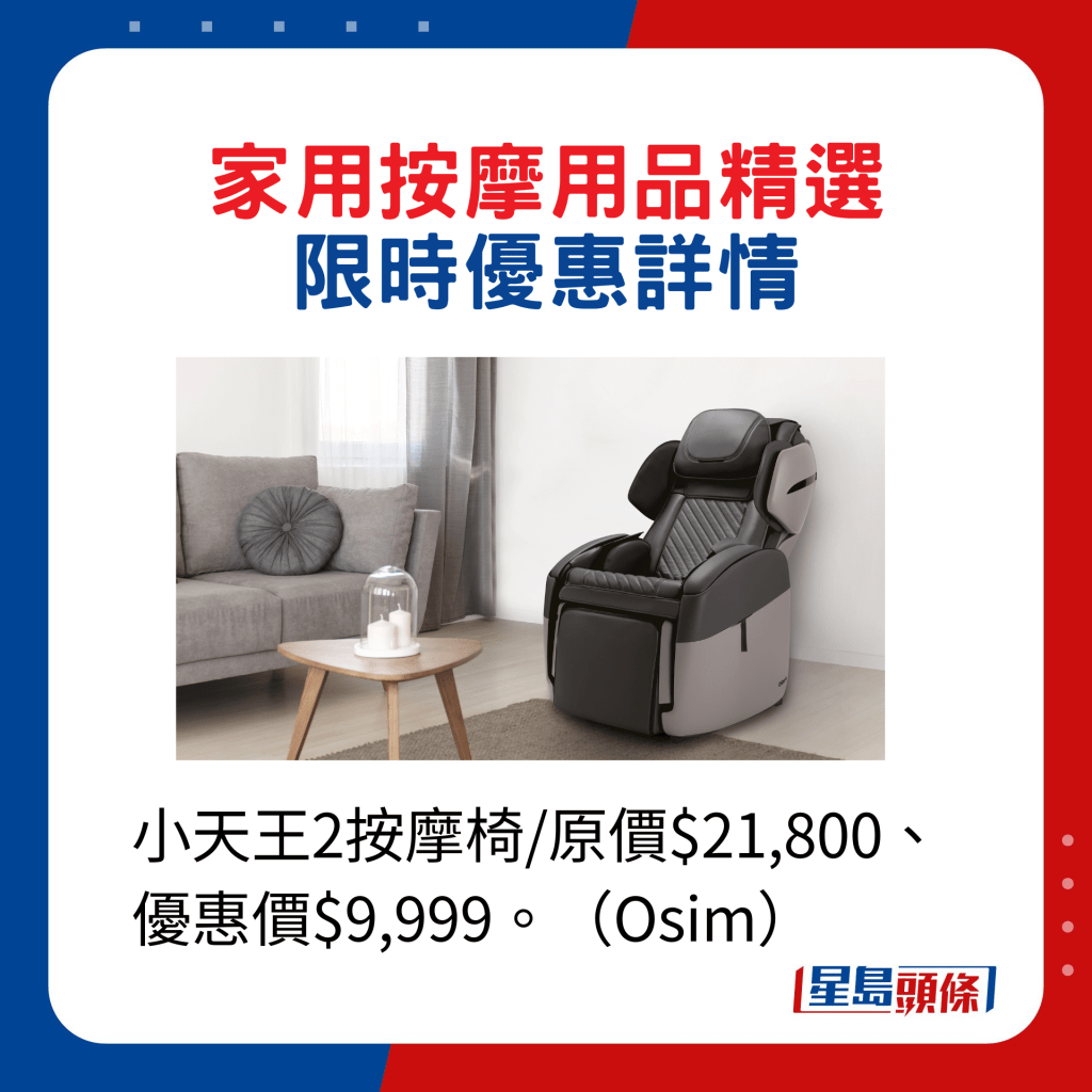 ▲小天王2按摩椅 原價$21,800、優(yōu)惠價$9,999。(Osim)
