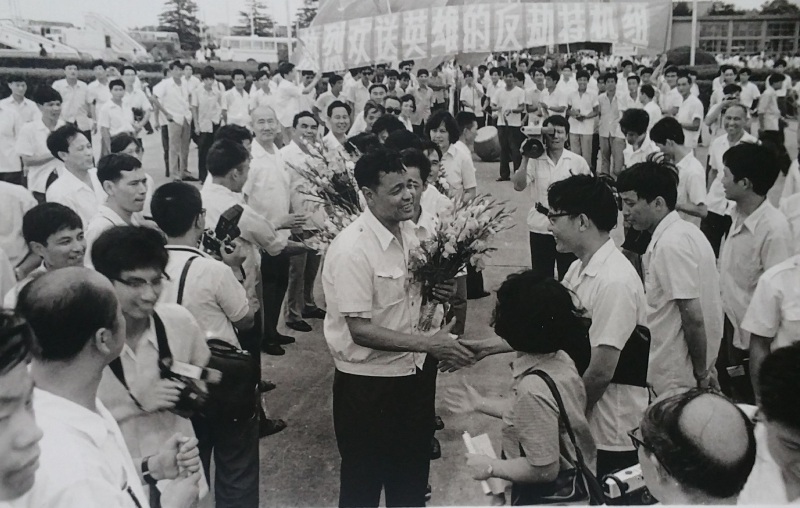 俞福坤、劉兆賢、苗學(xué)仁等男子手持地拖等“武器”沖向其他持利器的劫機(jī)者,許克敏、賈志梅、蓋蘭生等女空服員及其他乘客,則不斷傳遞雨傘、汽水瓶等一切可用的“武器”,雙方經(jīng)數(shù)分鐘搏斗后,成功先將兩名歹徒擊昏在地。