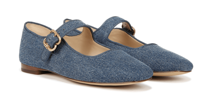 ▲Sam Edelman牛仔布Michaela瑪麗珍鞋/$1,400,粗搭帶配金屬扣。