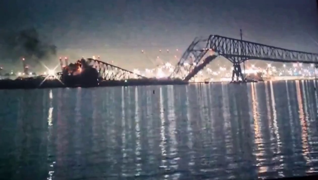 據(jù)美國傳媒報道,事件發(fā)生在26日凌晨1時半,巴爾的摩的Francis Scott Key Bridge,遭一艘貨柜輪撞斷。大橋被撞后隨即坍塌,有人和多架車輛落水。具體傷亡數(shù)字未明。