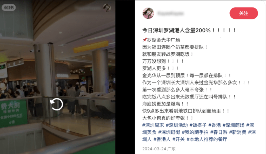▲小紅書博主分享深圳商場人流盛況。 (小紅書截圖)