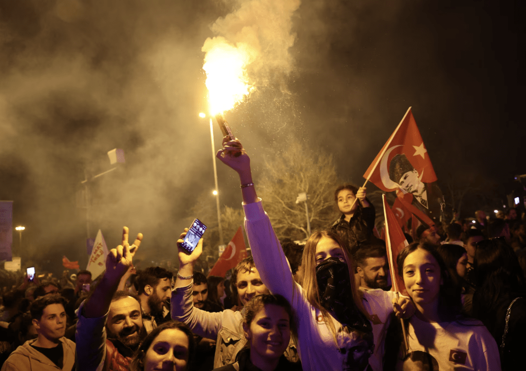 ▲伊斯坦布爾市長伊馬姆奧盧的支持者在慶祝勝選。路透社