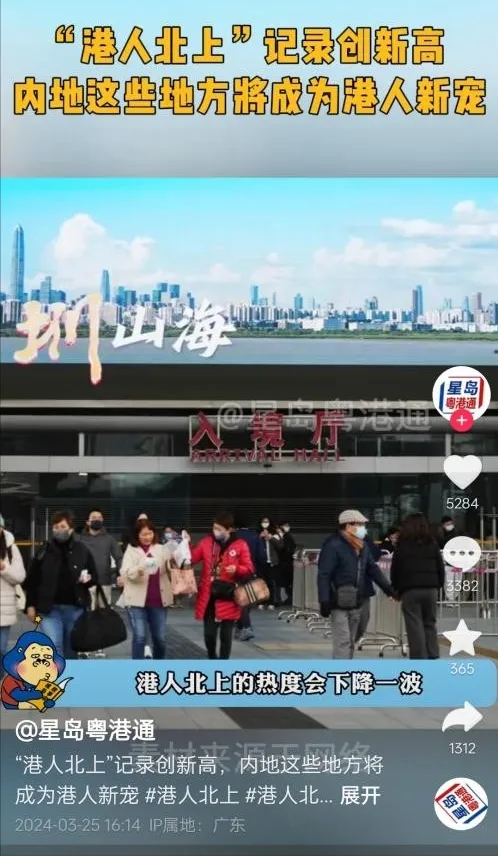 周一(25日),星島粵港通抖音號發(fā)布了一條關(guān)于“港人北上”的視頻,視頻獲得大量內(nèi)地網(wǎng)友留言。