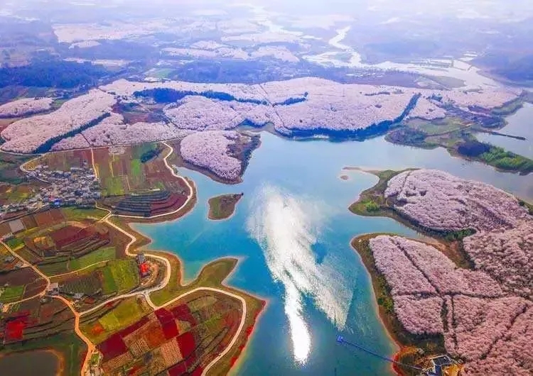 貴州平壩萬畝櫻花園。這里是全世界最大的櫻花基地,整體面積超過2.4萬畝,超過70 萬株的各色櫻花盡數(shù)點燃,塑造地球上最壯美的“櫻花世界”。