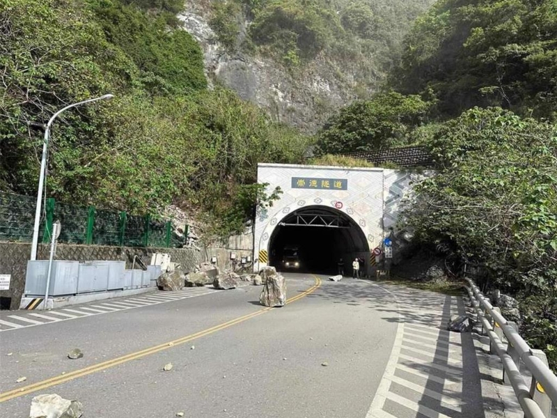 ▲花蓮近海7.2地震,造成清水?dāng)嘌律奖?,蘇花公路多車遭落石砸中傷亡不明。
