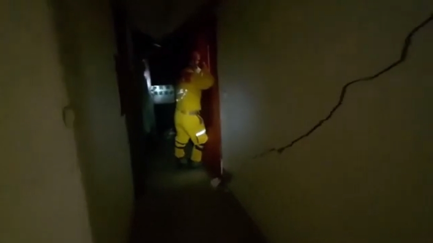 ▲受困的是一名康姓女子,原已逃出屋外,為了救援寵物兔又再進(jìn)屋,未料卻因此受困,特搜隊(duì)稍早前已派遣11人趕抵救援。視頻截圖