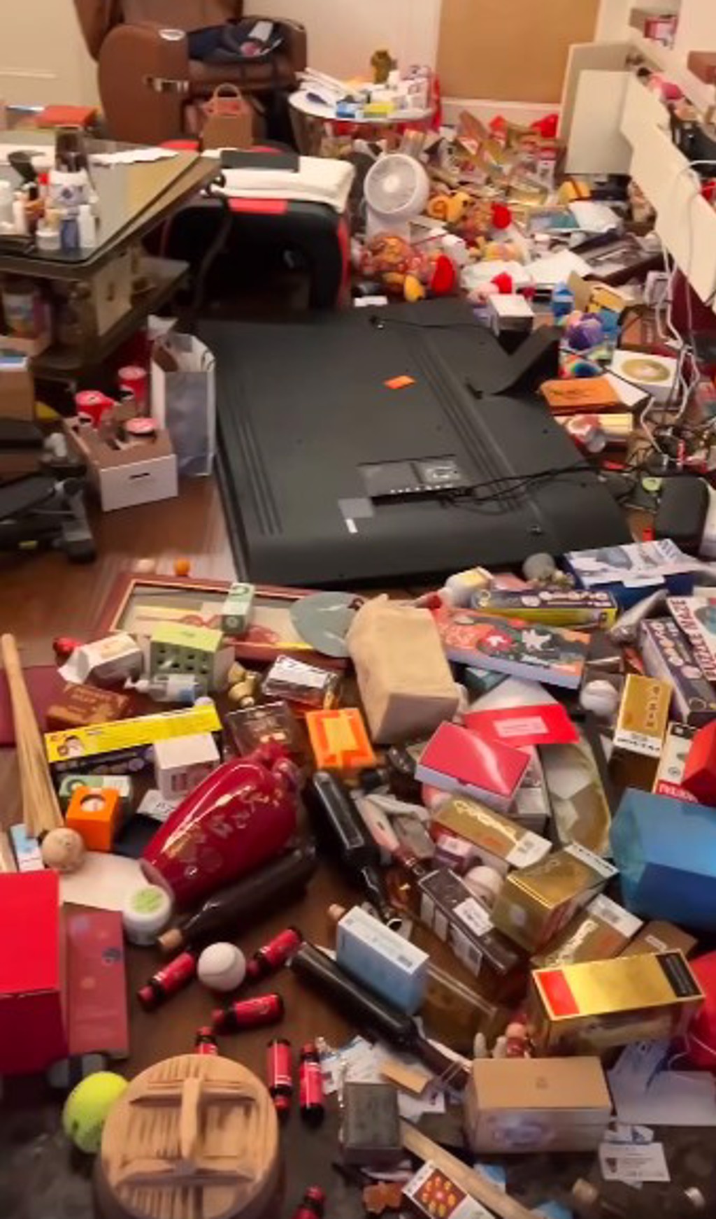 ▲花蓮縣“立委”傅昆萁4日在臉書貼出自家震后慘況,物品掉落滿地。(翻攝自傅昆萁臉書)
