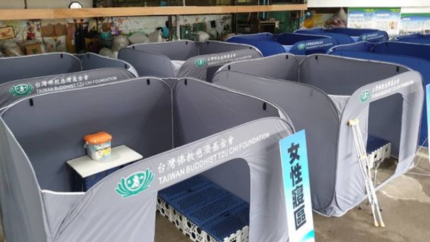 臺灣的避難所的帳篷,由慈濟(jì)基金會則提供。據(jù)報道,花蓮強(qiáng)震后,慈濟(jì)靜思精舍同日便準(zhǔn)備熱食,送到多個避難收容中心,并提供帳篷、福慧床、隔屏、環(huán)保毛毯等物資。