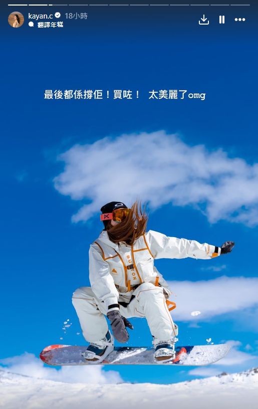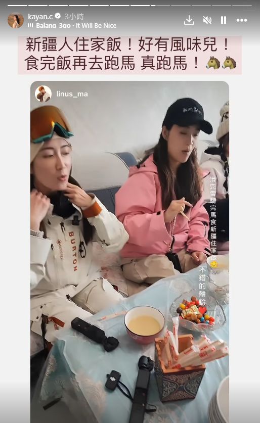 ▲蔡嘉欣近日又拉隊(duì)與一班好友到新疆滑雪。