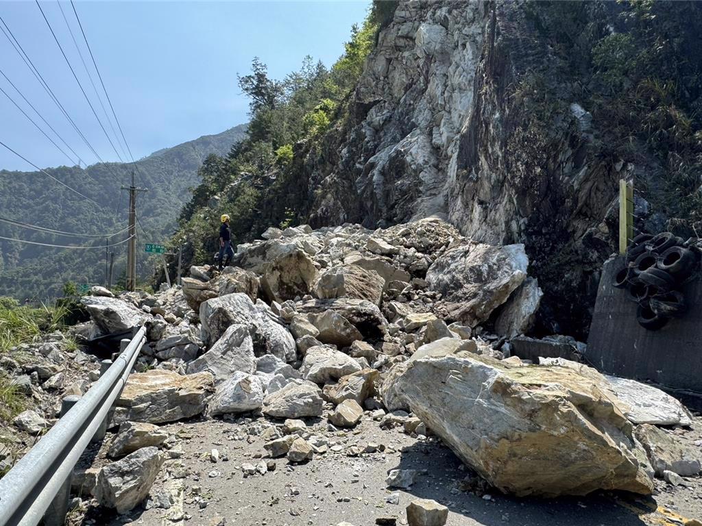 ▲花蓮大地震導(dǎo)致中橫便道多處落石坍方。