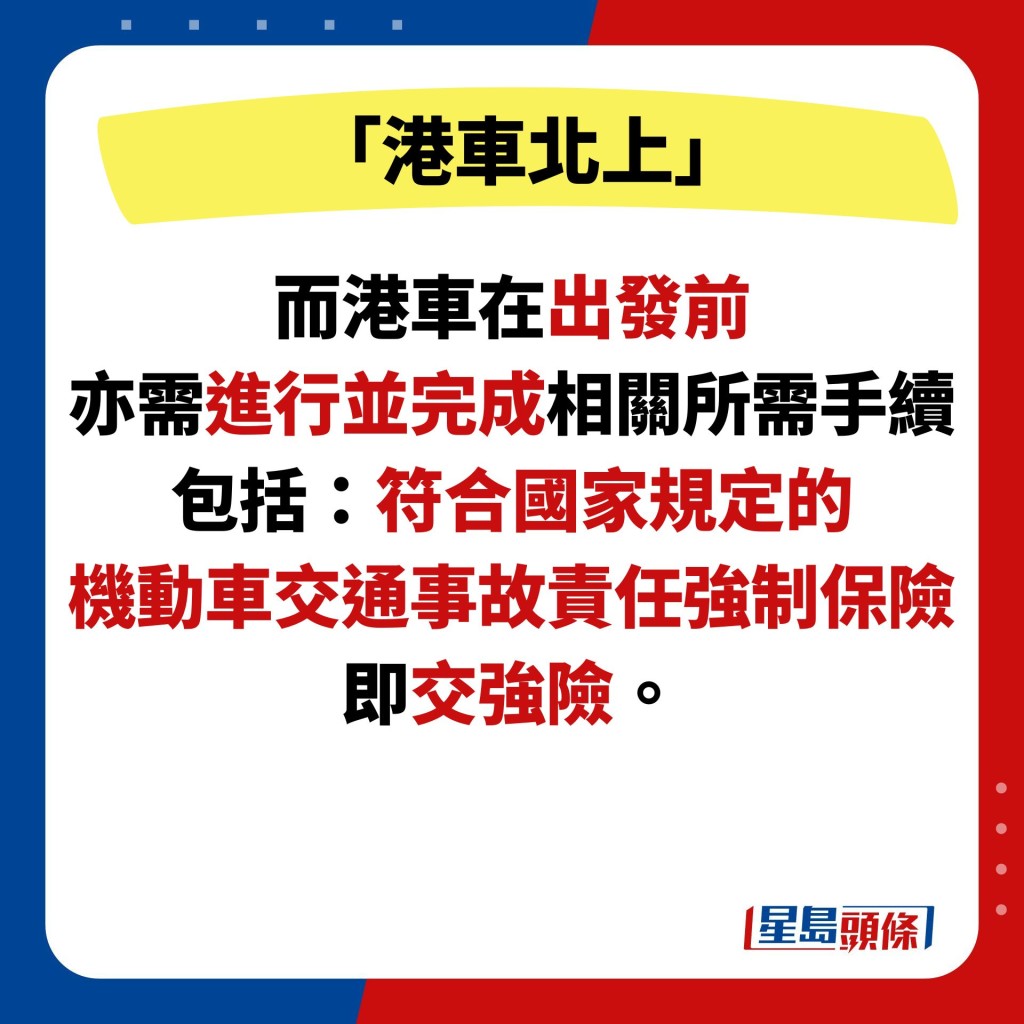 當然,要完成“港車北上”申請,必需要事前進行跨境車輛驗車,以及購買內地汽車保險。