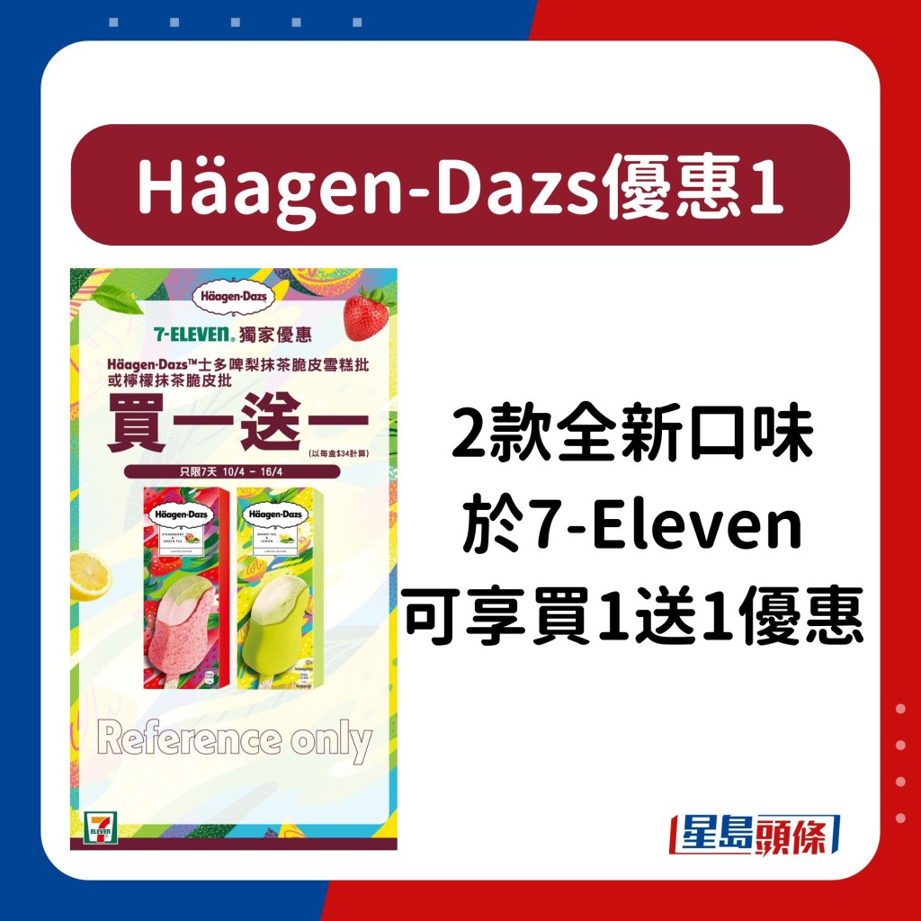 ▲兩款全新口味真果脆皮雪糕批由4月10日起,于7-Eleven均可享買1送1優(yōu)惠