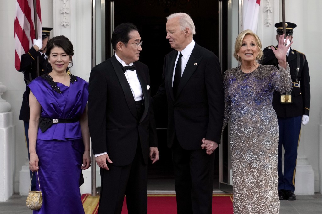 ▲拜登和岸田在白宮舉行約2小時會談,之后一同出席國宴。美聯(lián)社