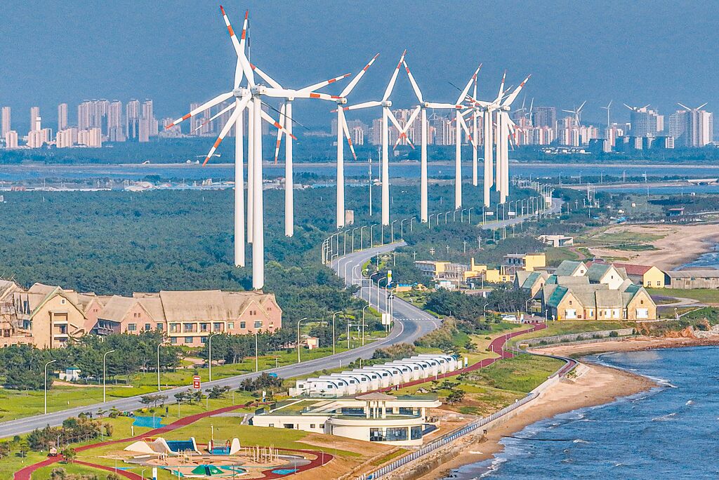 圖為山東省榮成市港西鎮(zhèn)北部沿海一處風(fēng)電場。
