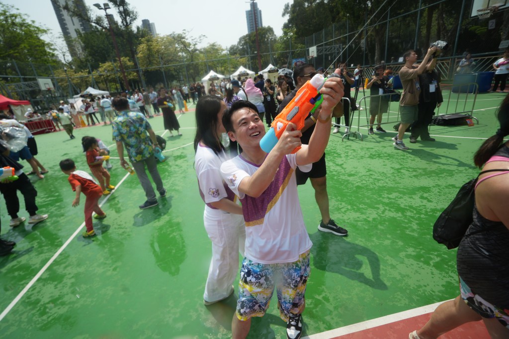 九龍城潑水節(jié)|巿民官員球場齊打水仗,卓永興:希望市民玩得盡興
