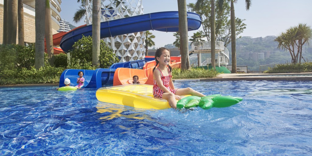 .暢玩酒店戶外區(qū)域,包括室外泳池、水上滑梯等