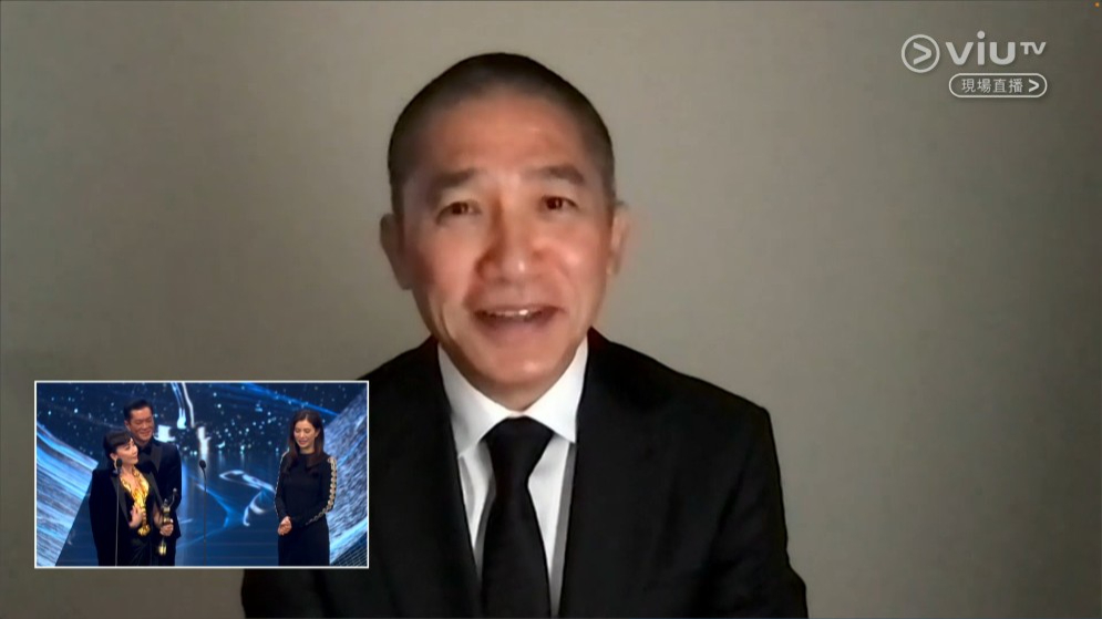 梁朝偉12次入圍金像獎最佳男主角,今年憑《金手指》第六次封影帝,他雖然未有到場,卻穿上西裝以視像形式現(xiàn)身,當宣布獲得最佳男主角時,梁朝偉一度開心掩面。頒獎嘉賓古天樂便邀請梁朝偉太太劉嘉玲上臺代領獎:“係咪要請(劉)嘉玲姐上臺(是否要請(劉)嘉玲姐上臺)?”劉嘉玲代老公梁朝偉領獎后,即尋找其身影說:“梁朝偉你講啲嘢啦?。?span style="font-size: 14px;">梁朝偉你說的那些話吧)”