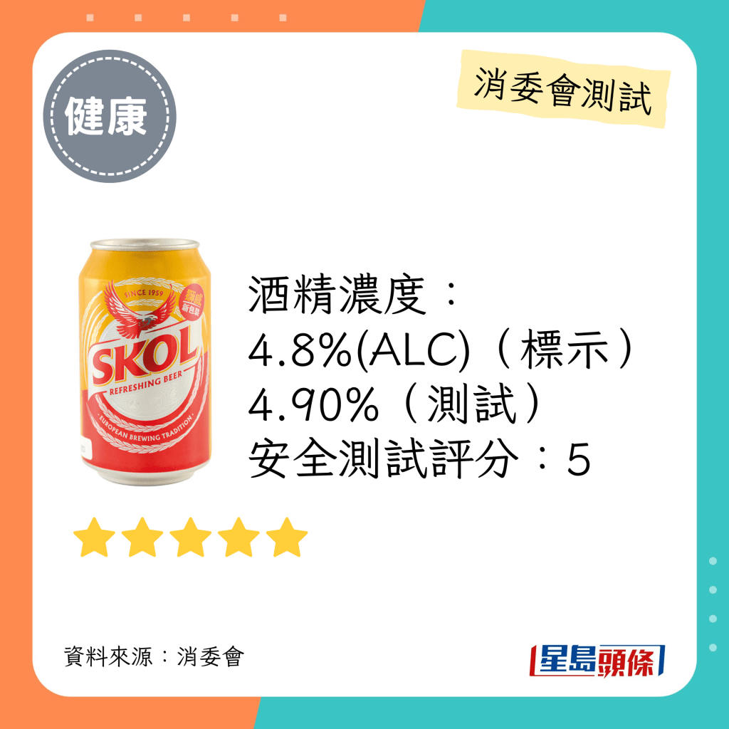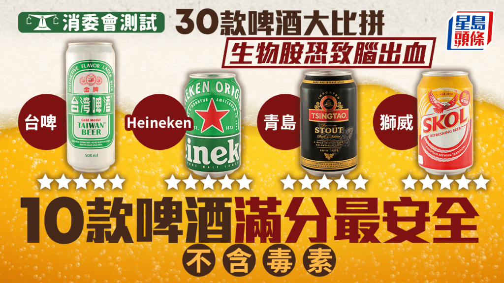 消委會(huì)啤酒滿分安全推介名單:香港啤酒公司。