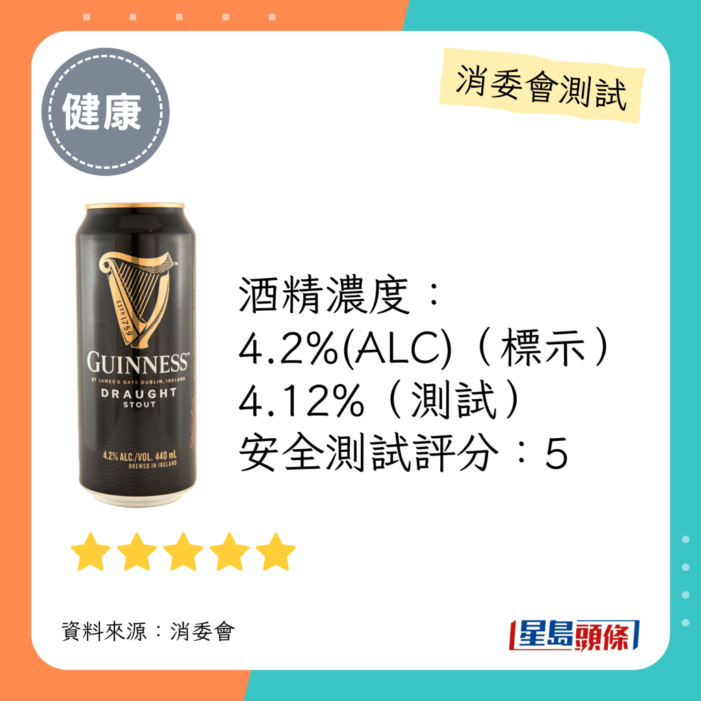 消委會(huì)啤酒滿分安全推介名單:Guinness。